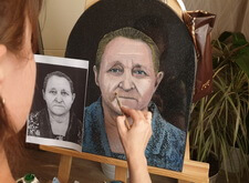 Сам же портрет наносится художником вручную. На приведённых ниже фото отображён поэтапный процесс рисования на граните: для начала камень покрывается специальной составом, затем медленно, начиная с одежды, вырисовываются детали. В заключении идёт углубление черт лица, так как без этого дополнения изображение на граните получится не реалистичным.