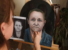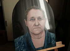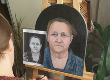 Первый этап работы – компьютерная обработка. Мы заменили одежду усопшей; удалили с головы платок, открыв полностью голову покойной; а также провели детальную доработку её лица: удалили большое количество морщин, сохранив черты.