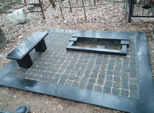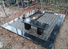 Первым делом на месте захоронения был проведен демонтаж всего, что там было. Сооружен бетонный ленточный фундамент. Уложена гранитная подложка под ограду, подставка под памятник, цветник и лавочка, также все свободное пространство могилы закрыто гранитной брусчаткой. Кстати, изначально лавочка была установлена иначе, чем обсуждалось и ее пришлось переустановить, хотя на могиле именно первый вариант установки был более привлекателен.