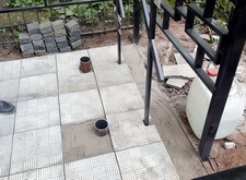 Уложенную плитку замываем – вода позволяет бетону схватиться, а также смывает пыль, образовавшуюся в ходе работы.