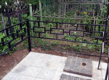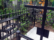 Металлическая ограда и кресты с бетонной плиткой
