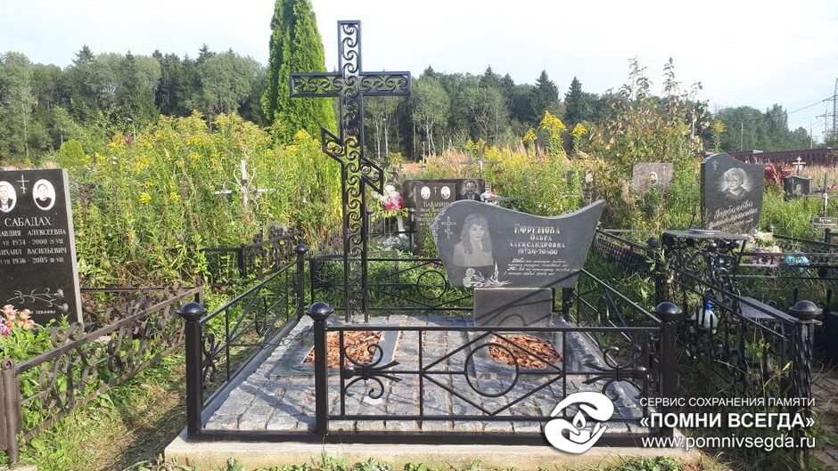 Далее покрасили оградку, насыпали в цветники кору, сняли защитную плёнку с креста. В таком виде место захоронения было представлено клиенту.