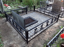 В ходе работы над данным заказом нам предстояло: переустановить покосившийся широкий памятник из чёрного гранита; покрасить обветшавшее от времени ограждение; обновить надписи на надгробье; установить прямоугольный цветник, а также выложить землю на участке гранитной брусчаткой. Приехав на место захоронения мы застали могилу в заброшенном состоянии: на всей её территории росла сорная трава, практически полностью скрывавшая памятник.