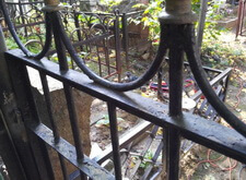 Далее мы чистим ограду до металла, мы используем для этого электрические болгарки и металлические щетки, там где мы не достаем болгарками, мы чистим ограду ручными щетками и ножами.