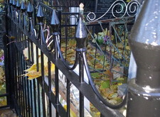 В первую очередь мы обжигаем ограду, необходимо сжечь всю краску, так ее будет проще очистить.
